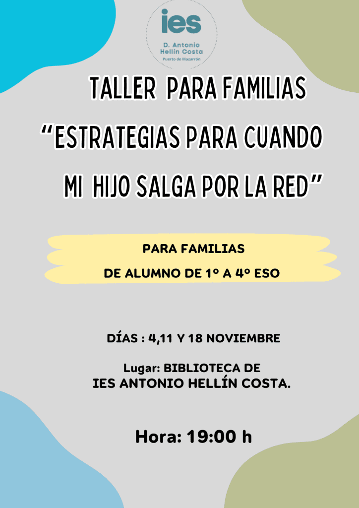 Conscientes de esta realidad, desde el IES queremos invitar a las familias a participar en nuestro taller “Estrategias para cuando mi hijo salga por la red”, un espacio práctico y cercano para aprender cómo acompañar, orientar y proteger a nuestros hijos en su vida digital.